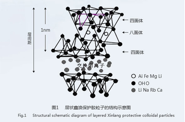鑫浪多彩保護(hù)膠的化學(xué)結(jié)構(gòu)通式為Mx[LixMg6-xSi8O20 (OH)yF4-y](M=Na、Li),是一種無(wú)機(jī)硅酸鹽 層狀納米礦物材,屬于單斜晶系 。由硅-氧四面體和鎂-氧八面體在豎直方向上以 2∶1 的周期性排 列堆積而成,其分子結(jié)構(gòu)如圖 1所示。硅-氧四面體由一個(gè)Si 原子與四個(gè) O 原子連接構(gòu)成,Si原子 在四面體的中心,四個(gè) O 原子在四面體的四個(gè)頂角處;鎂-氧八面體中,鎂原子位于八面體的中心, 八面體頂點(diǎn)的氧原子還與相鄰的鎂原子組成另外的八面體。